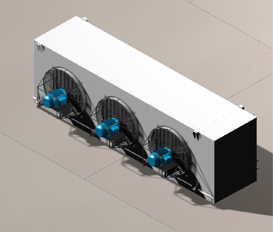 MANUAL DE EVAPORADORES/CLIMATIZADORES MEBRAFE 1. MANUAL DE EVAPORADORES MEBRAFE 1.1. DESCRIÇÃO: Os evaporadores Mebrafe são equipamentos construídos com a finalidade de trocarem uma determinada quantidade de calor com um ambiente frigorífico de baixa temperatura. A posição de instalação é variada, seguindo as condições do ambiente a ser instalado, mas sempre deve ficar na parte mais alta do ambiente (teto). Sua forma construtiva se dá através de um conjunto de tubos e curvas (serpentina) acopladas a aletas (estas podendo ser de aço, alumínio ou inox). Este conjunto ainda possui entrada e saida de fluido refrigerante (Amônia – NH3 por exemplo), bem como um fechamento em chaparia (estas podendo ser de aço, alumínio ou inox); e ainda possuem ventiladores na parte frontal (número de ventiladores altera conforme a necessidade do ambiente a ser instalado) e passagem de ar na parte traseira do equipamento. A forma de fixação pode ser através de patas já acopladas ao próprio equipamento (evaporador de apoiar), ou na sua forma mais usual é preso a estrutura metálica em longarinas apoiadas a estrutura de teto do ambiente (tesouras). Este tipo de fixação deve ser estudado caso a caso e a estrutura de apoio deve ser calculada para suportar o peso do equipamento (ver catálogo do equipamento para verificar o peso em operação). Atualmente, os evaporadores Mebrafe possuem as versões de comercialização em Aço Zincado, Inox e Alumínio, alterando em cada caso a eficiência e o rendimento frigorífico. Os evaporadores Mebrafe possuem sistema de ar forçado por meio de ventiladores axiais instalados a frente do equipamento, induzindo que o ar passe por toda a área de troca do equipamento. Esta indução é feita pela chaparia de fechamento que força o ar a transitar por toda a área de troca interna do evaporador. Os ventiladores axiais variam diâmetro de hélice, angulo de hélice, potência e polaridade dos motores conforme a necessidade do ambiente (possuem versões de baixo ruído para ambientes onde haja presença de pessoas trabalhando, sala de cortes por exemplo). Para grandes capacidades (túneis de congelamento contínuo por exemplo), são fornecidos blocos a serem montados em pilhas com coletores laterais para operação paralela e ventilação separada. Este tipo de equipamento é projetado para atender a necessidade conforme a especificação ou necessidade do cliente (consultar setor comercial Mebrafe). 2. EVAPORADORES PARA AMBIENTES REFRIGERADOS/CLIMATIZADOS Esta linha de evaporadores é projetada para trabalhar em temperaturas de evaporação de 0ºC ou superior (ambientes resfriados ou climatização de processo frigorífico industrial). Estes evaporadores possuem espaçamento de aletas de 6mm, já que há pouca formação de gelo no evaporador, sendo que o método de degelo (desencrustração de gelo do bloco) pode ser manual ou automática (consultar quadro de válvulas). 2.1 EVAPORADORES PARA AMBIENTES DE CONGELAMENTO, ESTOCAGEM OU TÚNEIS Este linha de evaporadores é projetada para trabalhar em temperaturas de evaporação inferiores a 0ºC (câmaras de estocagem, pré-resfriamento, estocagem de produto, túnel de congelamento semi-contínuo, etc...). Estes evaporadores possuem espaçamento de aletas de 8, 10 ou 12 mm (variação conforme temperatura e umidade relativa do ambiente a ser instalado). Este espaçamento é selecionado para aumentar o tempo de trabalho do equipamento sem que haja degelo; se o espaçamento for pouco e temperatura de evaporação muito baixa (-35ºC por exemplo) e umidade relativa do ambiente alta (90% por exemplo), haverá um fechamento total do bloco com gelo muito rapidamente, impedindo a passagem de ar pelo equipamento e forçando com que este opere em ciclo de degelo várias vezes ao dia. Este método acaba prejudicando a temperatura final desejada no ambiente, o método de degelo poderá ser manual ou automático (consultar quadro de válvulas). Esta linha de evaporadores conta ainda também com detalhes de degelo acoplados para um melhor desempenho, como por exemplo bandeja para captação de água isolada, serpentina para circulação de gás quente instalada também na bandeja (localizado na parte inferior do equipamento) e ainda chuveiro para degelo com água. Todos estes componentes são opcionais e variam sua instalação conforme aplicação e temperatura de trabalho dos evaporadores. 2.2. DESUMIDIFICADORES Esta linha de evaporadores é projetada para trabalhar em ambientes de alta umidade relativa e alta temperatura (expedição ou ante-câmaras por exemplo). Neste tipo de ambiente, geralmente há uma entrada de ar externo muito alta (ar quente 30ºC por exemplo) e no mesmo ambiente há ainda temperaturas muito baixas (câmara de estocagem -35ºC por exemplo), bem como umidade relativa alta. Como há este choque térmico de temperaturas, acaba ocorrendo uma condensação de líquido em painéis de isolamento ou qualquer outra superfície fria. Para estes casos, a Mebrafe aconselha a instalação de Climatizador/Desumidificador. Este tipo de equipamento é composto de uma área de troca com serpentina projetada para trabalhar com fluido frio e outra parte com área de troca (menor que a fria) para trabalhar com fluido quente. Quando os dois fluidos em circulação pelo equipamento, haverá desumidificação do ar ambiente, porém a temperatura ambiente será elevada, quando esta elevação atingira 3ºC a mais do que o desejado no ambiente, o fluido quente deverá ser desligado e continuar em funcionamento somente o fluido frio, ao atingir 3ºC a menos da temperatura desejada no ambiente, novamente deverá ser acionado o fluido quente, e assim sucessivamente. Para este caso, não há degelo, pois o ambiente trabalha com temperaturas positivas, porém o quadro de válvulas é específico para esta aplicação e deve ser automático, já que há constante variação de funcionamento das linhas de fluido refri