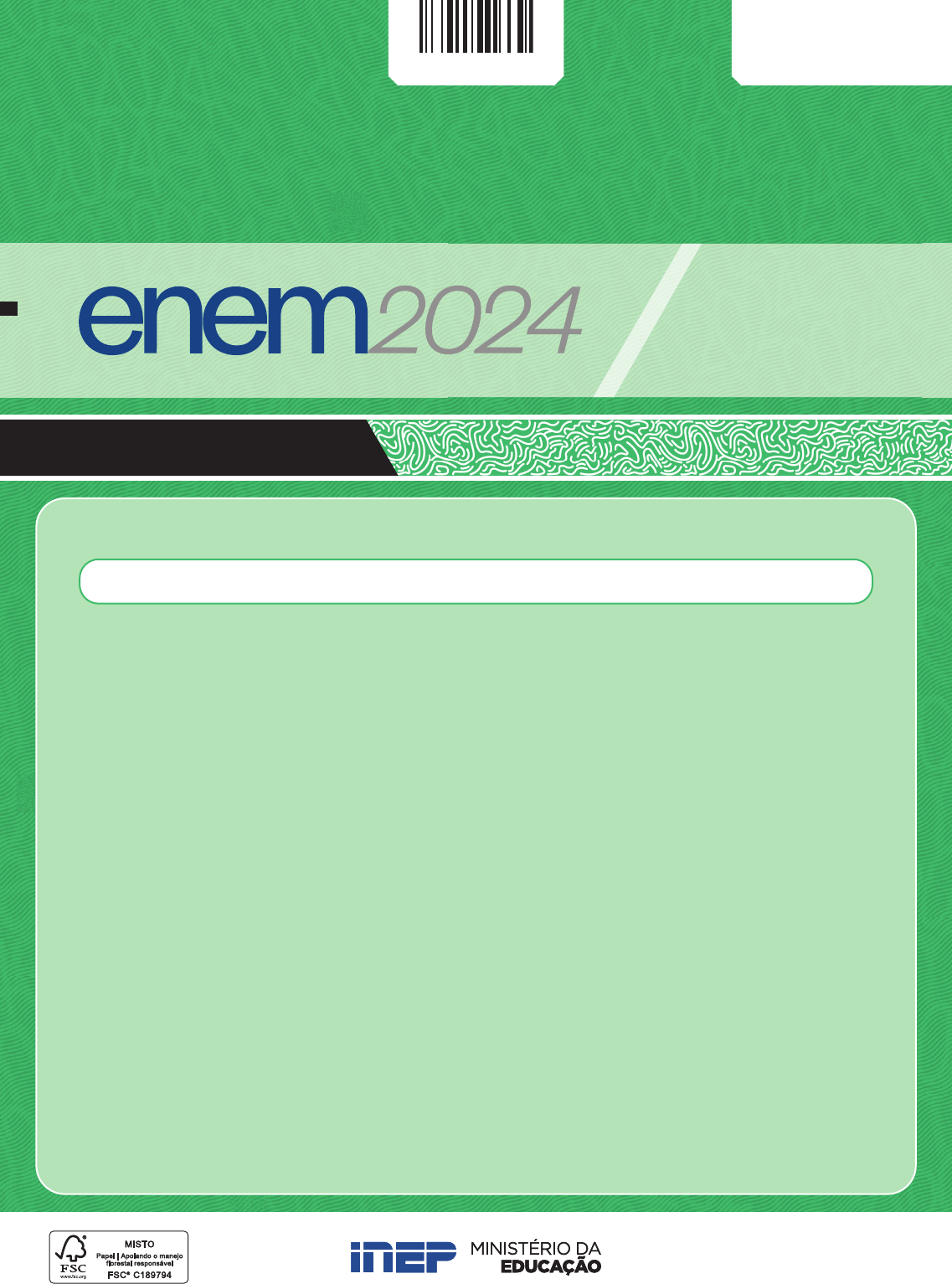 ENEM2024ENEM2024ENEM2024ENEM2024ENEM2024ENEM2024ENEM2024ENEM2024ENEM2024ENEM2024ENEM2024ENEM2024ENEM2024ENEM2024ENEM2024ENEM2024ENEM2024ENEM2024ENEM2024ENEM2024ENEM2024ENEM2024ENEM2024ENEM2024ENEM2024ENEM2024ENEM2024ENEM2024ENEM2024ENEM2024ENEM2024ENEM2024ENEM2024ENEM2024ENEM2024ENEM2024ENEM2024ENEM2024ENEM2024ENEM2024ENEM2024ENEM2024ENEM2024ENEM2024ENEM2024ENEM2024ENEM2024ENEM2024ENEM2024ENEM2024ENEM2024ENEM2024ENEM2024ENEM2024ENEM2024ENEM2024ENEM2024ENEM2024ENEM2024ENEM2024ENEM2024ENEM2024ENEM2024ENEM2024ENEM ENEM2024ENEM2024ENEM2024ENEM2024ENEM2024ENEM2024ENEM2024ENEM2024ENEM2024ENEM2024ENEM2024ENEM2024ENEM2024ENEM2024ENEM2024ENEM2024ENEM2024ENEM2024ENEM2024ENEM2024ENEM2024ENEM2024ENEM2024ENEM2024ENEM2024ENEM2024ENEM2024ENEM2024ENEM2024ENEM2024ENEM2024ENEM2024ENEM2024ENEM2024ENEM2024ENEM2024ENEM2024ENEM2024ENEM2024ENEM2024ENEM2024ENEM2024ENEM2024ENEM2024ENEM2024ENEM2024ENEM2024ENEM2024ENEM2024ENEM2024ENEM2024ENEM2024ENEM2024ENEM2024ENEM2024ENEM2024ENEM2024ENEM2024ENEM2024ENEM2024ENEM2024ENEM2024ENEM2024ENEM2024ENEM ENEM2024ENEM2024ENEM2024ENEM2024ENEM2024ENEM2024ENEM2024ENEM2024ENEM2024ENEM2024ENEM2024ENEM2024ENEM2024ENEM2024ENEM2024ENEM2024ENEM2024ENEM2024ENEM2024ENEM2024ENEM2024ENEM2024ENEM2024ENEM2024ENEM2024ENEM2024ENEM2024ENEM2024ENEM2024ENEM2024ENEM2024ENEM2024ENEM2024ENEM2024ENEM2024ENEM2024ENEM2024ENEM2024ENEM2024ENEM2024ENEM2024ENEM2024ENEM2024ENEM2024ENEM2024ENEM2024ENEM2024ENEM2024ENEM2024ENEM2024ENEM2024ENEM2024ENEM2024ENEM2024ENEM2024ENEM2024ENEM2024ENEM2024ENEM2024ENEM2024ENEM2024ENEM2024ENEM2024ENEM2024ENEM 2ª APLICAÇÃO 04 *010475VE1* 04 ATENÇÃO: transcreva no espaço apropriado do seu CARTÃO-RESPOSTA, com sua caligrafi a usual, considerando as letras maiúsculas e minúsculas, a seguinte frase: LEIA ATENTAMENTE AS INSTRUÇÕES SEGUINTES: 1. Este CADERNO DE QUESTÕES contém 90 questões numeradas de 01 a 90 e a Proposta de Redação, dispostas da seguinte maneira: a) questões de número 01 a 45, relativas à área de Linguagens, Códigos e suas Tecnologias; b) Proposta de Redação; c) questões de número 46 a 90, relativas à área de Ciências Humanas e suas Tecnologias. ATENÇÃO: as questões de 01 a 05 são relativas à língua estrangeira. Você deverá responder apenas às questões relativas à língua estrangeira (inglês ou espanhol) escolhida no ato de sua inscrição. 2. Confi ra se a quantidade e a ordem das questões do seu CADERNO DE QUESTÕES estão de acordo com as instruções anteriores. Caso o caderno esteja incompleto, tenha defeito ou apresente qualquer divergência, comunique ao aplicador da sala para que ele tome as providências cabíveis. 3. Para cada uma das questões objetivas, são apresentadas 5 opções. Apenas uma responde corretamente à questão. 4. O tempo disponível para estas provas é de cinco horas e trinta minutos. 5. Reserve tempo sufi ciente para preencher o CARTÃO-RESPOSTA e a FOLHA DE REDAÇÃO. 6. Os rascunhos e as marcações assinaladas no CADERNO DE QUESTÕES não serão considerados na avaliação. 7. Somente serão corrigidas as redações transcritas na FOLHA DE REDAÇÃO. 8. Quando terminar as provas, acene para chamar o aplicador e entregue este CADERNO DE QUESTÕES e o CARTÃO-RESPOSTA/FOLHA DE REDAÇÃO. 9. Você poderá deixar o local de prova somente após decorridas duas horas do início da aplicação e poderá levar seu CADERNO DE QUESTÕES ao deixar em defi nitivo a sala de prova nos 30 minutos que antecedem o término das provas. EXAME NACIONAL DO ENSINO MÉDIO PROVA DE LINGUAGENS, CÓDIGOS E SUAS TECNOLOGIAS E REDAÇÃO PROVA DE CIÊNCIAS HUMANAS E SUAS TECNOLOGIAS 1ºº DIA 4 CADERNO VERDE Cada estação da vida é uma edição, que corrige a anterior Azul 1 Amarelo 2 Branco 3 Rosa 4 Ledor 9 Libras 10 1 Azul 2 Amarelo 3 Branco 4 Rosa 9 Ledor 10 Libras 1 Dia 1°Capa 1 Dia 4°Capa Libras 12 Ledor 11 Azul 7 Rosa 8 Cinza 6 Amarelo 5 2 Dia 1°Capa 12 Libras 11 Ledor 7 Azul 8 Rosa 6 Cinza 5 Amarelo 2 Dia 4°Capa Bigurrilhos.indd 1BBiigguurrrriillhhooss..iinndddd 11 14/06/2022 17:12:0614/06/2022 17:12:06010475VE.indb 1010475VE.indb 1 03/09/2024 11:35:4503/09/2024 11:35:45 LINGUAGENS, CÓDIGOS E SUAS TECNOLOGIAS Questões de 01 a 45 Questões de 01 a 05 (opção inglês) QUESTÃO 01 BARRY, L. Disponível em: www.avclub.com. Acesso em: 25 out. 2021. Essa história em quadrinhos, que apresenta dois personagens frente a um quadro, ilustra a A necessidade de promoção do ensino de Arte. B diversidade de opiniões sobre dispositivos culturais. C dificuldade de valorização de elementos culturais. D importância de identificação com produções artísticas. E possibilidade de aprendizado de técnicas artísticas. QUESTÃO 02 The Middle East is warming faster than much of the world, and Kuwait is moving towards unbearable temperatures. With the mercury topping 53°° C, three Kuwaiti citizens — an influencer, a weather forecaster and a retired civil servant — raised the alarm. They urged that Kuwait must not be allowed to get any hotter — and none of them had a solution to offer. The Global Climate Summit (COP26) in Glasgow was seen as crucial if climate change is to be brought under control. Almost 200 countries were asked for their plans to cut emissions, and it could lead to major changes to our everyday lives. Disponível em: www.bbc.com. Acesso em: 26 out. 2021 (adaptado). Nesse texto, o vocábulo “unbearable” enfatiza a A dificuldade da vida em temperaturas muito altas. B importância da conferência global do clima. C rapidez do aquecimento no Oriente Médio. D descrença na previsão do tempo. E mudança na vida cotidiana. QUESTÃO 03 My father speaks Urdu language of dancing peacocks rosewater fountains even its curses are beautiful. He speaks Hindi suave and melodic earthy Punjabi salty rich as saag paneer coastal Kiswahili laced with Arabic, he speaks Gujarati solid ancestral pride. Five languages five different worlds yet English shrinks him down before white men who think their flat c