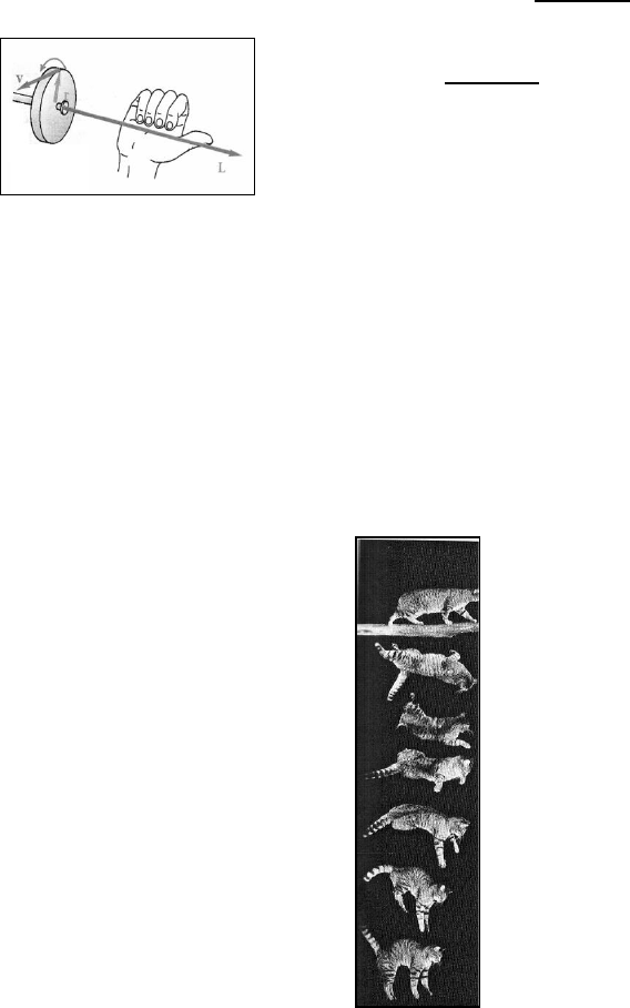 UNIDAD 4 Dinámica Rotacional _____________________________________________________________________________________________________________ _______________________________________________________________________________________________________ DINÁMICA MSc. Franklin Molina 61 CANTIDAD DE MOVIMIENTO ANGULAR Las cosas que giran como un cilindro que rueda bajando un plano inclinado, un acróbata ejecutando un salto mortal, siguen girando hasta que algo los detiene. Un objeto que gira tiene una inercia de rotación y como ya se dijo anteriormente todos los objetos que se mueven tienen inercia de movimiento o cantidad de movimiento, en el caso de los objetos que giran se llama cantidad de movimiento angular. Los planetas en órbita en torno al Sol, una piedra que gira en el extremo de una cuerda y los diminutos electrones que giran en torno a los núcleos atómicos tienen cantidad de movimiento angular. Se define la cantidad de movimiento angular (L) como el producto del momento lineal mv y el radio R del cuerpo que gira. L = mv.R; L = p.R La cantidad de movimiento angular es una magnitud vectorial cuya dirección se define aplicando la regla de la mano derecha. Con la definición de ω = v/r podemos expresar la magnitud del momento angular en términos de la velocidad angular: L = m.R 2 ω También podemos remplazar I = m R2 así: L = I ω Podemos concluir diciendo que un objeto o sistema mantiene su cantidad de movimiento angular a menos que sobre ellos actúe un momento de torsión externo neto. Ecuación: L = I ω Unidades SI: L = [ kg . m2 . rad/s ] L = [kg . m2 / s] Dimensión: L = [ M . L2 . T -1 ] CONSERVACION DE LA CANTIDAD DE MOVIMIENTO ANGULAR. Del mismo modo que la cantidad de movimiento lineal de cualquier sistema se conserva si no hay fuerza neta que actúe sobre él, la cantidad de movimiento angular establece: Si ningún momento de torsión neto externo actúa sobre un sistema en rotación, la cantidad de movimiento angular de este sistema permanecerá constante. Esto significa que, si no hay un momento de torsión externo, el producto de la inercia de rotación por la velocidad de rotación será igual en cualquier instante de tiempo. Analíticamente podemos deducir la ecuación: Sabemos que α = ωf − ωo t ; ζ = I. α ζ = I. ωf − ωo t ; ζ . t = I ωf - I ωo Impulso angular = Cambio en la cantidad de movimiento angular Pero si no existe ningún momento de torsión externo al cuerpo que gira podemos afirmar que ζ = 0 . 0 = I ωf - I ωo I ω0 = I ωf Cantidad de movimiento angular final = Cantidad de movimiento inicial Esta afirmación nos permite explicar como un gato que cae de una rama elevada puede ejecutar un giro y caer parado. También los seres humanos cuando se lanzan de un trampolín de una piscina, sin dificultad pueden ejecutar giros. UNIDAD 4 Dinámica Rotacional _____________________________________________________________________________________________________________ _______________________________________________________________________________________________________ DINÁMICA MSc. Franklin Molina 62 EJERCICOS RESUELTOS 1. Una barra uniforme delgada de 1 m de largo tiene una masa de 7 kg. Si la barra se apoya sobre su centro de masa y gira a una velocidad angular de 18 rad/s, calcular la cantidad de movimiento de la barra. Sabemos que I de la barra es: I =1/12mL2 ; I =1/12(7kg)(1m)2; I = 0,58 kg m2 La cantidad de movimiento angular de la barra esta dado por: L =I ω; L=(0,58 kgm2)(18 rad/s); L =10,44 kgm2 /s 2. Una piedra atada a una cuerda se hace girar alrededor de un círculo horizontal. Si la piedra originalmente se mueve a una velocidad de 0,5 rad/s. Calcular la velocidad angular si el radio del círculo disminuye a la mitad. Cuando se tira de la cuerda, la fuerza actúa a través del eje de rotación. De esta manera no se aplica un momento de torsión a la piedra y el momento inercia queda inalterado. Podemos aplicar la ecuación de la cantidad de movimiento angular: I ω0 = I ωf m Ro 2 .ω0 = mRf 2 . ωf ωf = Ro 2 Rf 2 ωo ; ωf = ( 𝑅𝑜 0,5 𝑅𝑜 ) 2 ( 0,5 rad/s) ωf = 2 rad/s A menor radio aumenta la velocidad angular. 3. Una mujer tiene un momento de inercia constante de 5 kg.m2 y que sostiene una masa de 8 kg en cada mano. Cuando sostiene las masas a una distancia ro = 0,8 m del eje de rotación, se le imprime una velocidad angular inicial de ωo=3 rad /s. Si acerca las masas hasta una distancia rf de 0,3 m del centro de rotación. Calcular su nueva velocidad angular. Si consideramos que las masas de 8kg son masas puntuales, el momento de inercia Im de la mujer aumentará en cada caso mr2, donde M = 16 kg es la masa total y r es la distancia de las masas al eje de rotación. Por la conservación de la cantidad de movimiento que indica que la cantidad de movimiento inicial es igual a la cantidad de movimiento final, podemos escribir: I ω0 = I ωf ( Im + M Ro 2 ) .ω0 = ( Im + M Rf 2 ). ωf Remplazamos los datos y despejamos la velocidad angular final. [ 5 kg.m2 + (16kg)(0,8m)2 ](3rad/s) = [5 kg.m2 + (16kg)(0,3m)2 ] ωf ωf = 7,10 rad/s La velocidad angular aumento al acercar las masas a su pecho. EJERCICIOS TAREA 1. Un patinador de hielo empieza su movimiento circular a una velocidad de 1,5 rev/s con los brazos extendidos. Luego encoge sus brazos para acercarlos al cuerpo, lo que produce una disminución de su momento de inercia a tres cuartas partes del valor inicial. Calcular la velocidad angular final del patinador. 2. Un aeroplano de juguete se mueve en el extremo de una cuerda alrededor de un punto fijo en un círculo horizontal de 1 m de radio. Si la velocidad lineal es de 4,86 m/s. Calcular la velocidad si se tira de la cuerda para dar un radio de 0,750 m. Suponer que no hay momento de torsión. 3. El cometa Halley se mueve alrededor del Sol en una órbita elíptica. Su aproximación más cercana al Sol es de 0,59 U.A. y su distancia más grande es de 35 U.A. ( 1 U.A. = la distancia de la Tierra al Sol ). Si la rapidez