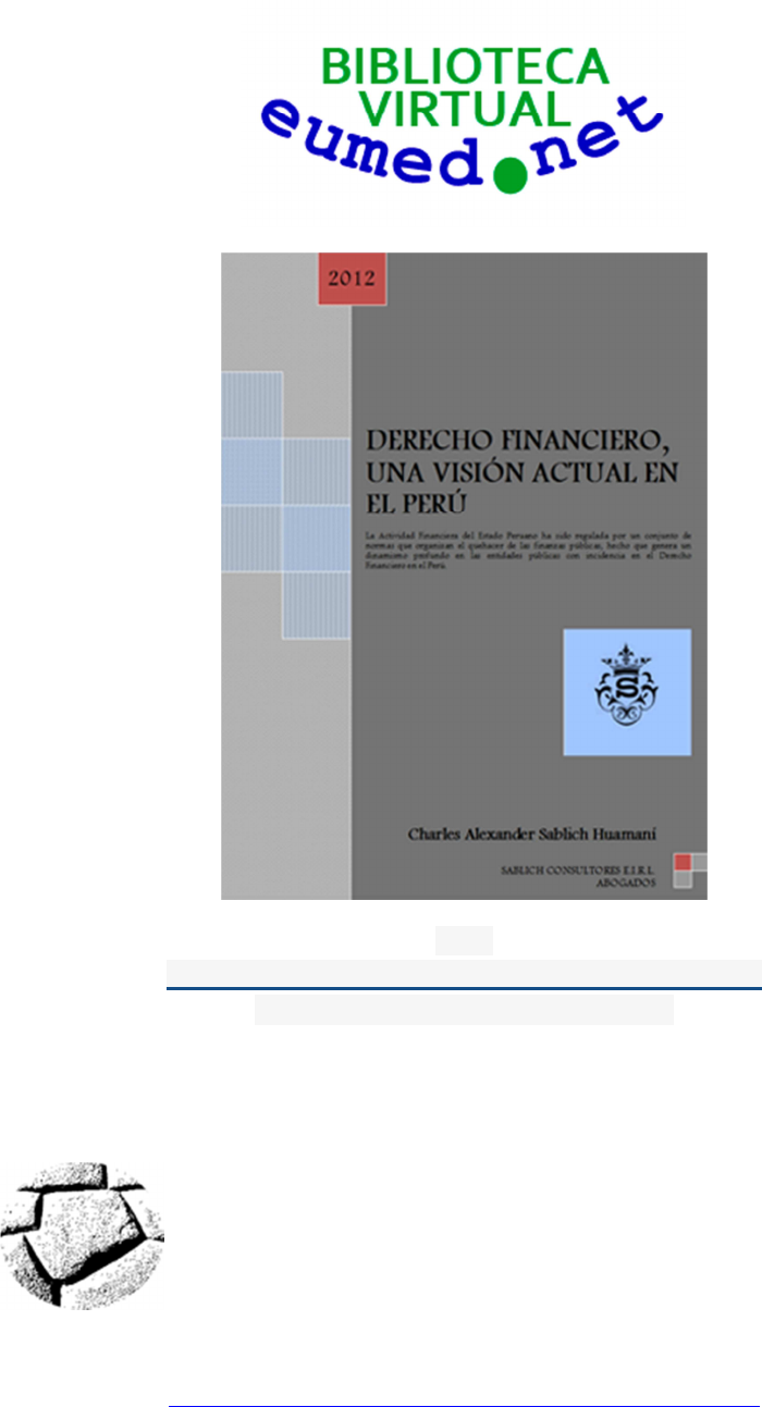 1347 Derecho financiero, una visión actual en el Perú Charles Alexander Sablich Huamani Editado por la Fundación Universitaria Andaluza Inca Garcilaso para eumed.net Derechos de autor protegidos. Solo se permite la impresión y copia de este texto para uso personal y/o académico. Este libro puede obtenerse gratis solamente desde http://www.eumed.net/libros-gratis/2013b/1347/index.htm Cualquier otra copia de este texto en Internet es ilegal. DERECHO FINANCIERO, DERECHO FINANCIERO, DERECHO FINANCIERO, DERECHO FINANCIERO, UNA VISIÓN ACTUAL EN UNA VISIÓN ACTUAL EN UNA VISIÓN ACTUAL EN UNA VISIÓN ACTUAL EN EL PERÚEL PERÚEL PERÚEL PERÚ La Actividad Financiera del Estado Peruano ha sido regulada por un conjunto de normas que organizan el quehacer de las finanzas públicas, hecho que genera un dinamismo profundo en las entidades públicas con incidencia en el Derecho Financiero en el Perú. 2012 Charles Alexander Sablich HuamaníCharles Alexander Sablich HuamaníCharles Alexander Sablich HuamaníCharles Alexander Sablich Huamaní SABLICH CONSULTORES E.I.R.L. ABOGADOS SABLICH CONSULTORES E.I.R.L. Abogados Asociados Charles Alexander Sablich Huamaní 2 Residencial El Remanso CResidencial El Remanso CResidencial El Remanso CResidencial El Remanso C----04 (Urb. Puente Blanco)04 (Urb. Puente Blanco)04 (Urb. Puente Blanco)04 (Urb. Puente Blanco).... Cercado de Ica, ProvinCercado de Ica, ProvinCercado de Ica, ProvinCercado de Ica, Provincia y Departamento de Ica.cia y Departamento de Ica.cia y Departamento de Ica.cia y Departamento de Ica. Tel. 511Tel. 511Tel. 511Tel. 511----056056056056----218050, 511218050, 511218050, 511218050, 511----056056056056----212922, 511212922, 511212922, 511212922, 511----956481406.956481406.956481406.956481406. E mail: sablich2000@yahoo.esE mail: sablich2000@yahoo.esE mail: sablich2000@yahoo.esE mail: sablich2000@yahoo.es CAPACITACIÓN, CONSULTORÍA & ASESORÍA EMPRESARIAL 2012 ABOGADOSABOGADOSABOGADOSABOGADOS SABLICH CONSULTORES E.I.R.L. Abogados Asociados Charles Alexander Sablich Huamaní 3 DERECHO FINANCIERO, DERECHO FINANCIERO, DERECHO FINANCIERO, DERECHO FINANCIERO, UNA VISIÓN ACTUAL EN UNA VISIÓN ACTUAL EN UNA VISIÓN ACTUAL EN UNA VISIÓN ACTUAL EN EL PERÚEL PERÚEL PERÚEL PERÚ CHARLES ALEXANDER SABLICH HUAMANICHARLES ALEXANDER SABLICH HUAMANICHARLES ALEXANDER SABLICH HUAMANICHARLES ALEXANDER SABLICH HUAMANI ÍÍÍÍNDICENDICENDICENDICE GENERALGENERALGENERALGENERAL PÁGINAPÁGINAPÁGINAPÁGINA SABLICH CONSULTORES E.I.R.L. Abogados Asociados Charles Alexander Sablich Huamaní 4 INTRODUCCIÓNINTRODUCCIÓNINTRODUCCIÓNINTRODUCCIÓN……………………………………………………………………………………………………………………………………………………………………………………………………………………………… I. EL DERECHO FINANCIEROI. EL DERECHO FINANCIEROI. EL DERECHO FINANCIEROI. EL DERECHO FINANCIERO………………………………………..………………………………………..………………………………………..……………………………………….. 1.1 Concepto de Derecho Financiero………………………………………. 1.2 Las Finanzas Públicas y su relación con el Estado de Derecho………... 1.3 La Actividad Financiera del Estado…………………………………….. 1.4 La Actividad Financiera conformada en Actividad Jurídica…………... II. II. II. II. LA AUTONOMÍA CIENTÍFICA DEL DERECHO FINANCIERO Y ALGUNAS LA AUTONOMÍA CIENTÍFICA DEL DERECHO FINANCIERO Y ALGUNAS LA AUTONOMÍA CIENTÍFICA DEL DERECHO FINANCIERO Y ALGUNAS LA AUTONOMÍA CIENTÍFICA DEL DERECHO FINANCIERO Y ALGUNAS POSICIONESPOSICIONESPOSICIONESPOSICIONES…………………………………………………………………………………………………………………………………………………………………………………………………………..…………..…………..…………...... 2.1 Corriente Administrativa………………………………………………. 2.2 Corriente Autonomista…………………………………………………. 2.3 Corriente Intermedia…………………………………………………... 2.4 Ramas del Derecho Financiero………………………………………… • Derecho Tributario…………………………………………………. � Derecho Tributario Material……………………………………. � Derecho Tributario Formal……………………………………… � Derecho Tributario Procesal…………………………………….. • Derecho Internacional Tributario………………………………….. • Derecho Constitucional Tributario………………………………… • Derecho Penal Tributario…………………………………………... 2.5 Relación del Derecho Financiero con otras disciplinas Jurídicas……... • Con el Derecho Administrativo…………………………………….. • Con el Derecho Constitucional…………………………………….. • Con el Derecho Internacional……………………………………… • Con el Derecho Penal……………………………………………….. 2.6 Relación del Derecho Financiero con otras disciplinas no Jurídicas….. • Con la Economía………………………………………………….... • Con la Economía Política…………………………………………… • Con la Econometría…………………………………………………. III.III.III.III. PRESUPUESTO PÚBLICO Y GASTO PÚBLICOPRESUPUESTO PÚBLICO Y GASTO PÚBLICOPRESUPUESTO PÚBLICO Y GASTO PÚBLICOPRESUPUESTO PÚBLICO Y GASTO PÚBLICO…………………..…………………..…………………..………………….. 3.1 Introducción……………………………………………………………. 3.2 Gasto Público