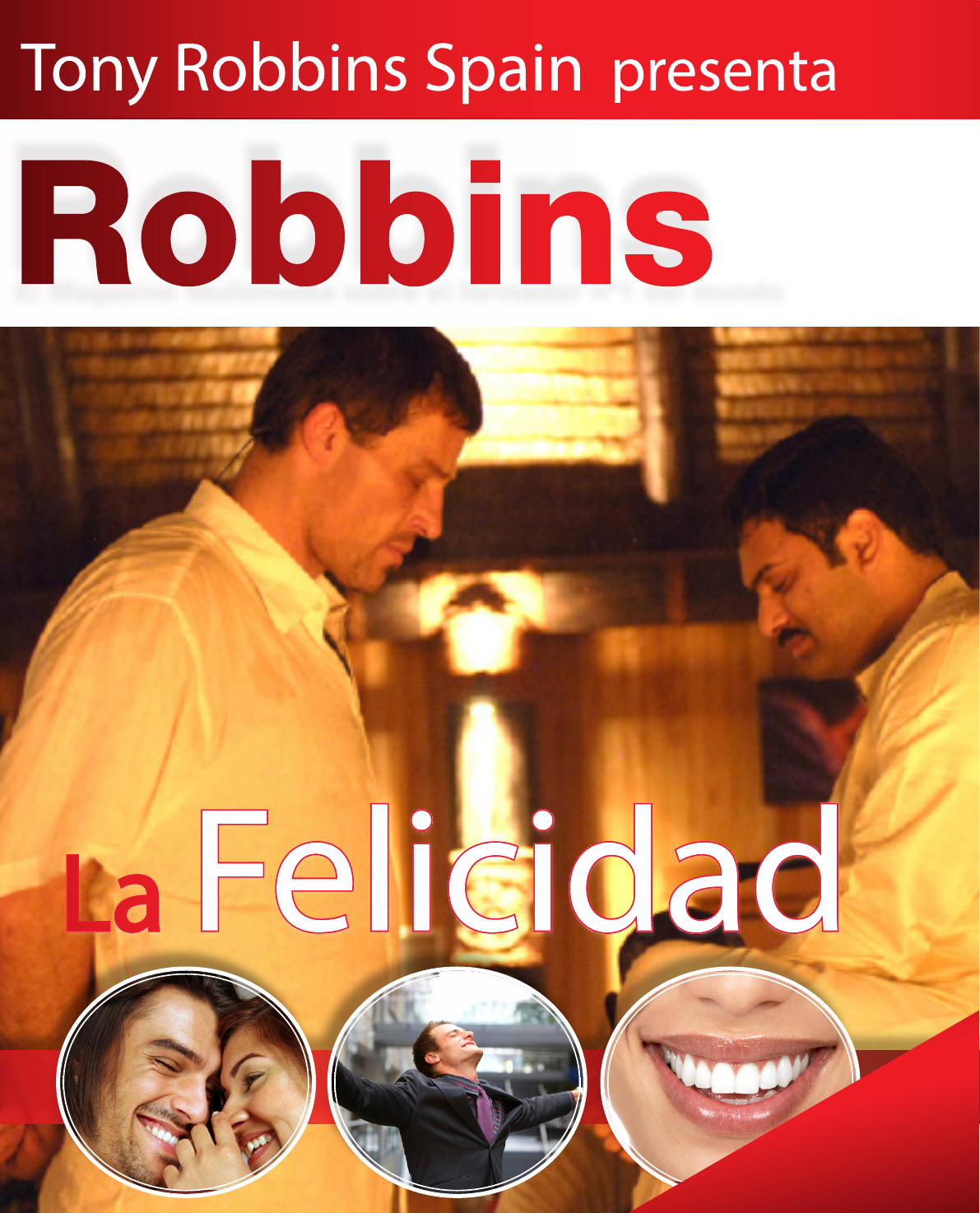 LaLa FFelicidadelicidad nº 12RobbinsRobbins El Magazine Multimedia sobre el formador nº1 del mundo Tony Robbins Spain presenta ¡N ueva ¡N ueva E dición! E dición! La Felicidad www.tonyrobbinsspain.com El Magazine Multimedia sobre el Formador número 1 del mundo www.tonyrobbinsspain.com REDACCIÓN ESPECIAL La Felicidad Editorial ¡Queridos amigos, bienvenidos! En cada número abordamos un tema cercano al mundo de la formación mediante profundizaciones, entrevistas y consejos de expertos. En este número hablamos de felicidad, un estado emocional que quisiéramos que estuviese presente en nuestra vida cada día. En el Reino Unido, el exprimer ministro Cameron propuso medir el progreso no sólo en términos de PIB, sino también mediante el estado de bienestar y serenidad de los ciudadanos. Como testimonio de la importancia que hoy damos a esta “emoción”, en las páginas que siguen hablaremos de un estudio que ha implicado a tres profesores de prestigiosas universidades americanas para saber qué se esconde detrás de la felicidad y como es posible cultivarla día tras día… hasta descubrir cuál es la fórmula exacta de la felicidad. Cada magazine representa para nuestro equipo un desafío y una nueva aventura. Creemos firmemente que la puesta en común y el uso compartido de ideas y de objetivos son dos ingredientes indispensables para crecer y para mejorar. Por eso, os invitamos a escribirnos para proponernos nuevos temas, ideas o reflexiones. Esperamos que nuestro magazine pueda ser un estímulo para todos vosotros e abriros en las puertas de la verdadera felicidad. ¡Buena lectura! Isabel Sales, Directora Tony Robbins Spain, Partner Oficial en Español de Tony Robbins desde 2005. Única Coach española del equipo de Tony el “Must Team”. www.tonyrobbinsspain.com info@tonyrobbinsspain.com ¿CUÁLES SON LOS INGREDIENTES de la FELICIDAD ? Contenido Por gentileza de Robbins Research International (RRI) Redacción Tony Robbins Spain, Partner Oficial en Español de Tony Robbins. Valencia (España) info@tonyrobbinsspain.com Traducción Isabel Sales, miembro del “Must Team” de Tony Robbins • (c) Copyright Tony Robbins Spain. Todos los derechos reservados para los contenidos e imágenes de este Magazine. Pueden ser utilizados y/o difundidos para un uso no lucrativo siempre y cuando se cite la fuente y se incluya un link activo a la web: www.tonyrobbinsspain.com www.tonyrobbinsspain.com http://www.tonyrobbinsspain.com La Felicidad www.tonyrobbinsspain.com El Magazine Multimedia sobre el Formador número 1 del mundo www.tonyrobbinsspain.com ¿EXISTE UNA RECETA PARA SER FELIZ? EL TEMA DEL MES O ¿es sólo cuestión de suerte? La felicidad es el primer deseo de la mayoría de nosotros. Muchas personas piensan que la felicidad proviene del éxito, de la acumulación de riqueza, por tener salud y tener relaciones duraderas. Seré feliz cuando… tenga un coche nuevo, la casa más grande, la compañera ideal, cuando disfrute más a mis amigos, cuando adelgace, cuando, cuando...”. Es un fuerte condicionamiento social y cultural creer que una hermosa casa, una carrera en ascenso y un gran amor son sinónimos de una vida feliz. En realidad éxito, riqueza, salud, relaciones son una consecuencia de la felicidad, no la causa. ¿Cuántas personas conocemos que tienen todo esto y sin embargo no son felices? Ahora piensa en las ocasiones en las que tú te has sentido feliz. Puede ser al regresar de unas espléndidas vacaciones, por las felicitaciones de tu jefe, tras un reencuentro con los amigos. ¿Qué sucede? ¿Crees que la felicidad esta hecha sólo de momentos que poco después desaparecen, o piensas que es un estado emocional que puede ser eterno? Una cosa es cierta: ¡no sirve la varita mágica para ser felices! Crecimiento www.tonyrobbinsspain.com http://www.tonyrobbinsspain.com La Felicidad www.tonyrobbinsspain.com El Magazine Multimedia sobre el Formador número 1 del mundo www.tonyrobbinsspain.com En los últimos años psicólogos e investigadores han efectuado numerosos estudios sobre este tema. En el pasado se hablaba de cómo curar la infelicidad; ahora que ha crecido el interés por el bienestar y la prevención, ha crecido también el interés por «cómo» alcanzar la felicidad. En particular, los profesores de la universidad de Illinois y de Pensilvania Sonya Lyubomirsky, Ed Diener, Martin Seligman, han descubierto la que en muchos casos llaman la fórmula de la felicidad. Según estos expertos la felicidad es la suma de Set point cerebral + condiciones de vida + actividades voluntarias. Examinemos la fórmula más en detalle, mediante el análisis de los 3 elementos sustanciales. 1 EL SET POINT CEREBRAL Representa el 40% sobre de la fórmula y determina como “naturalmente” somos felices. Es un factor que se transmite genéticamente y a menudo está vinculado a la infancia. En síntesis: si tu ADN está predispuesto a ser infeliz, al crecer, tu mente desarrollará un mecanismo que te hará ver en cada situación un problema, y esto te hará aún más infeliz. Al contrario, si desde pequeño te enseñan a interpretar la vida de manera constructiva, verás los problemas como oportunidades. El Set point cerebral no es algo que nos “etiquete” para siempre. Según los autores, en efecto, mediante instrumentos tales como la terapia cognitiva, podemos “hacer feliz” nuestro Set point cerebral. Se trata de convertir nuestras creencias limitantes “Soy desgraciado, todos están en mi contra” en pensamientos positivos y reales del tipo: “Quizás en el pasado he sido una víctima pero esto no quiere decir que lo vaya a ser siempre”. En síntesis, estos instrumentos pueden hacer nuestra mente más favorable y receptiva a los hábitos constructivos y a la felicidad. Fórmula: Felicidad = Set point cerebral + Condiciones de vida + Actividad voluntaria Esta es la www.tonyrobbinsspain.com http://www.tonyrobbinsspain.com La Felicidad www.tonyrobbinsspain.com El Maga