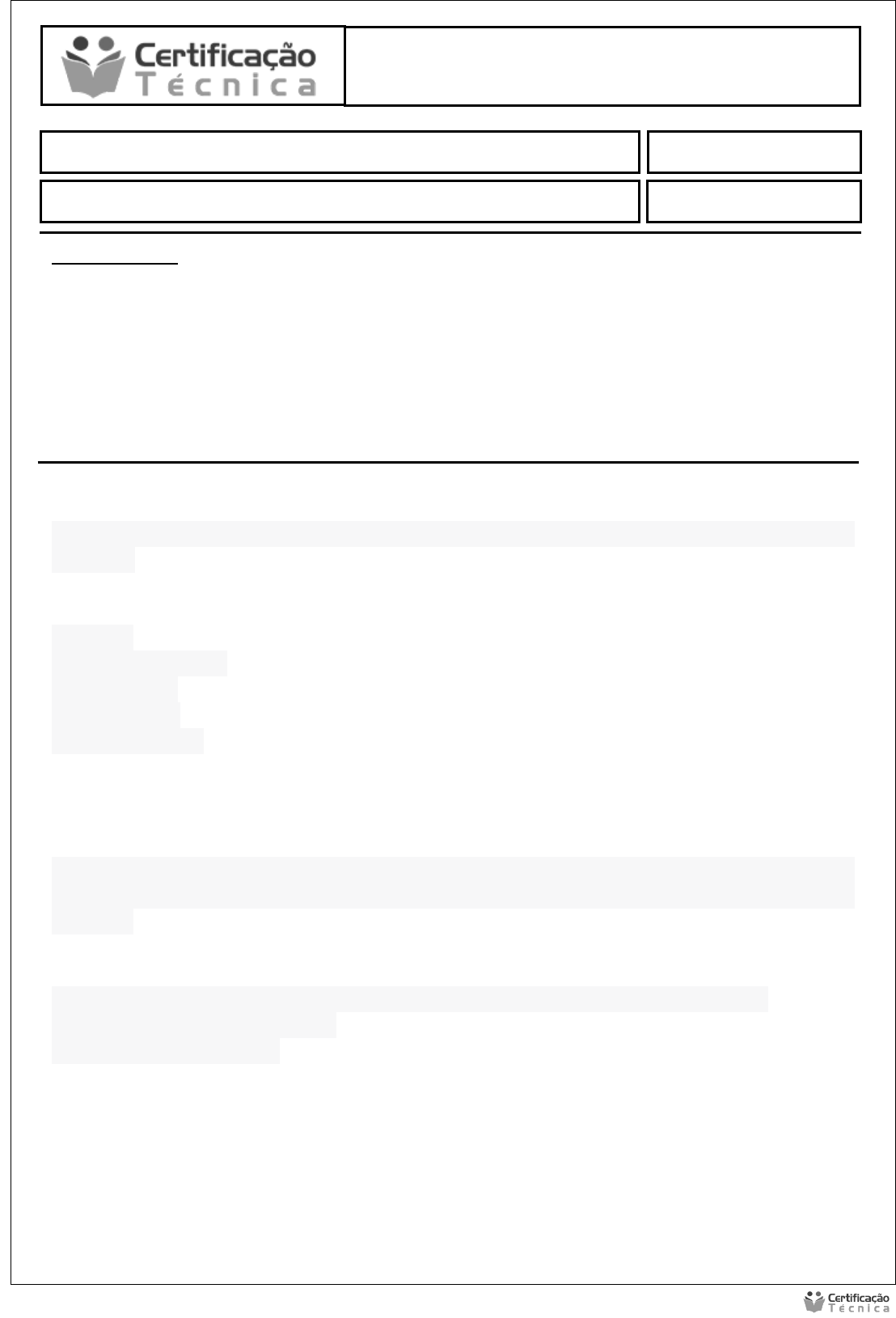 INSTRUÇÕES: ❖ Esta Avaliação contém 8 (oito) questões, totalizando 10 (dez) pontos; ❖ Baixe o arquivo disponível com a Atividade de Pesquisa; ❖ Você deve preencher dos dados no Cabeçalho para sua identificação: o Nome / Data de entrega. ❖ As respostas devem ser digitadas abaixo de cada pergunta; ❖ Ao terminar grave o arquivo com o nome Atividade Prática; ❖ Envio o arquivo pelo sistema no local indicado; ❖ Em caso de dúvidas consulte o seu Tutor. Aluno (a): Bruno da Silva Rosa Data: 17/08/2025 Estabilidade - EDI Estabilidade - EDI NOTA: Atividade Prática e de Pesquisa Pergunta 1: Calcule o momento de inércia de uma viga retangular com base de 20 cm e altura de 40 cm. I=b⋅h³/12 I=20 cm⋅(40 cm)³/12 I=20⋅64000/12 I=1.280.000/12 I≈106.666,67 cm4 Pergunta 2: Determine a carga máxima que uma viga de concreto armado suporta, conside- rando uma resistência característica à compressão de 30 MPa e uma área de seção transversal de 0,1 m² Carga máxima = Resistência característica à compressão x Área de seção transversal Carga máxima = 30 MPa x 0,1 m² Carga máxima = 3 MPa.m² Estabilidade - EDI Pergunta 3: Calcule a tensão de compressão em um pilar de concreto armado com uma carga de 150 kN e uma área de seção transversal de 0,2 m². Tensão = Força / Área Converter a força para newtons: 150 kN = 150.000 N Tensão = 150.000 N / 0,2 m² Tensão = 750.000 N/m Pergunta 4: Determine a força cortante máxima em uma viga de madeira com uma carga con- centrada de 1000 N no meio do vão. Vmax = P/2 Vmax = 1000 N / 2 Vmax = 500 N Pergunta 5: Calcule o momento fletor máximo em uma viga de aço com uma carga uniforme- mente distribuída de 5 kN/m e um vão de 6 metros. Máximo Momento Fletor = (Carga Uni. Distribuída x Comprimento do Vão²) / 8 MMF = (5 kN/m x 6 m²) / 8 MMF = (5 x 6²) / 8 MMF = (5 x36) / 8 MMF = 180 / 8 MMF = 22,5 kNm Pergunta 6: Determine o valor do coeficiente de segurança para uma estrutura cuja carga de ruptura é de 200 kN e a carga máxima permitida é de 160 kN. Coeficiente de segurança = Carga de ruptura / Carga máxima permitida Coeficiente de segurança = 200 kN / 160 kN Coeficiente de segurança = 1,25 kN
