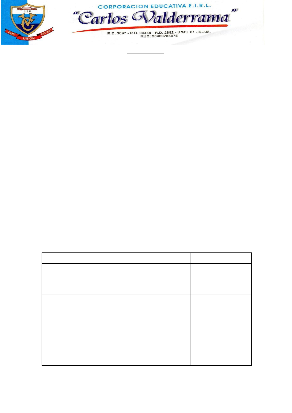 Que SYLLABUS I- DATOS GENERALES: 1.1 Año Lectivo : 2026 1.2 Bimestre : I BIMESTRE 1.3 Área : Educación Religiosa 1.4 Grado : 5° 1.5Horas semanales : 2 horas 1.6 Profesor(a) : Erasmo Pablo Mattos Zabarburu II-JUSTIFICACIÓN: El área de Educación Religiosa busca que los estudiantes conozcan y comprendan los principios fundamentales de la fe cristiana, promoviendo valores como el amor, la justicia, la esperanza y la reconciliación. A través del estudio de la Biblia y de la vida de Jesucristo, los estudiantes reflexionarán sobre su comportamiento personal y su convivencia con los demás. III-DESARROLLO DE CONTENIDOS: Cronograma Contenidos Indicador de logro Semana 1 Normas de convivencia. Reconoce y aplica normas de convivencia en el aula. Semana 2 Importancia del curso de Religión. Estudio del Evangelio de Jesucristo. Conocer a Dios (nombre y atributos) Juan 17:3; Éxodo 3:13-15. Comprende la importancia del Evangelio en la vida diaria. Identifica quién es Dios y sus atributos según la Biblia. Semana 3 Datos de nuestro Señor Jesucristo. Juan 1; Juan 6 Semana Santa: pasión, muerte y resurrección. Mateo 26 a Mateo 28; Lucas 24; Hechos 10. Reconoce aspectos importantes de la vida de Jesús. Comprende el significado de la Semana Santa. Semana 4 Feriado 03/04/2026 Semana 5 Los mandamientos de la ley de Dios. Éxodo 20:1-17 Deuteronomio 5:1-21; Mateo 19:16-30. El mandamiento más importante. Marcos 12:28-34 Mateo 22: 34 - 40 Identifica los mandamientos y su importancia. Comprende el mandamiento del amor a Dios y al prójimo. Semana 6 Valores cristianos: fe, amor, esperanza, justicia y santidad. Hebreos 11; 1 Corintios 13 Valora los principios cristianos para su vida. Semana 7 Somos pecadores: Necesitamos reconciliarnos con Dios. Arrepentimiento. Romanos 3:9-31 Hechos 2:36-40 Mateo 18:6-9 Entiende que somos pecadores y necesitamos el perdón de Dios. Semana 8 FERIADO 01/05/2026 Semana 9 Examen bimestral Desarrolla el examen de Religión. IV- BIBLIOGRAFÍA PARA EL ESTUDIANTE: - LA SANTA BIBLIA