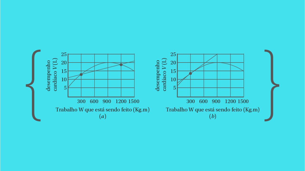 a) A partir da reta secante que aparece na figura 2a, estimar a taxa média de desempenho cardíaco em relação ao trabalho a ser executado quando este aumenta de 300 para 1200 kg.m.
